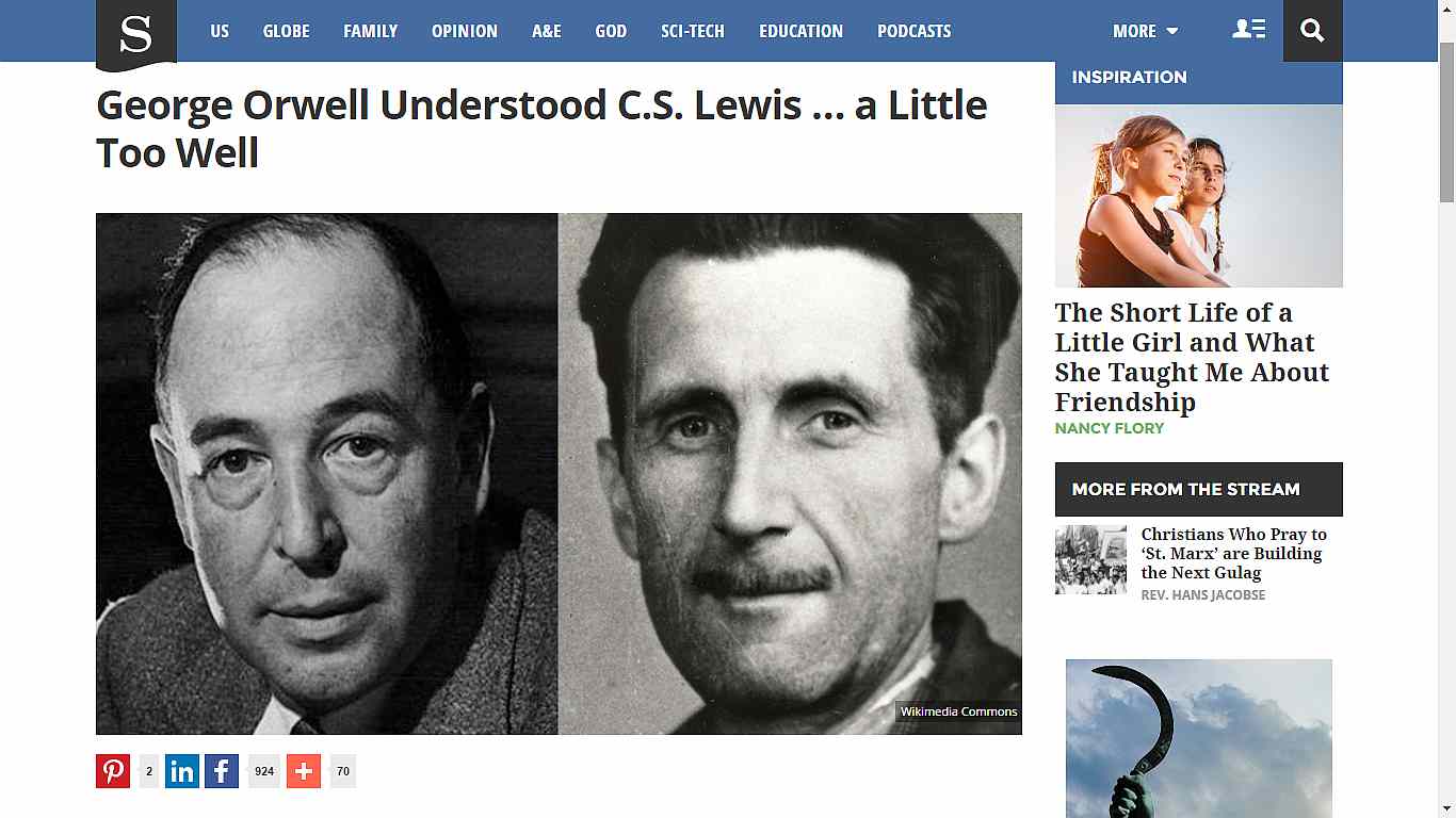 ![]() Jan. 03, 2017 - George Orwell Understood C.S. Lewis … a Little Too Well |